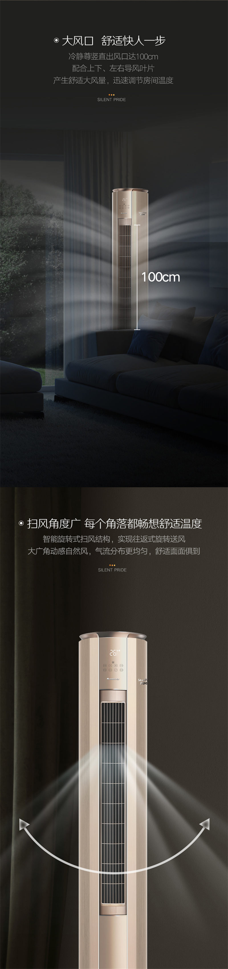 格力(GREE)冷静尊新一级能效变频柜机,第二代格力冷酷外机,10cm长出风口,宽域立体自动扫风。8℃离房保温,56℃净菌自洁,金属拉丝工艺。